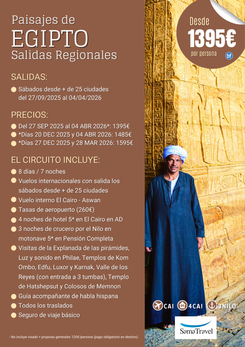 EGP Regional "Paisajes de Egipto": 8 días Cairo +crucero +visitas [+ de 25 ciudades de salida] **Desde 1395€**